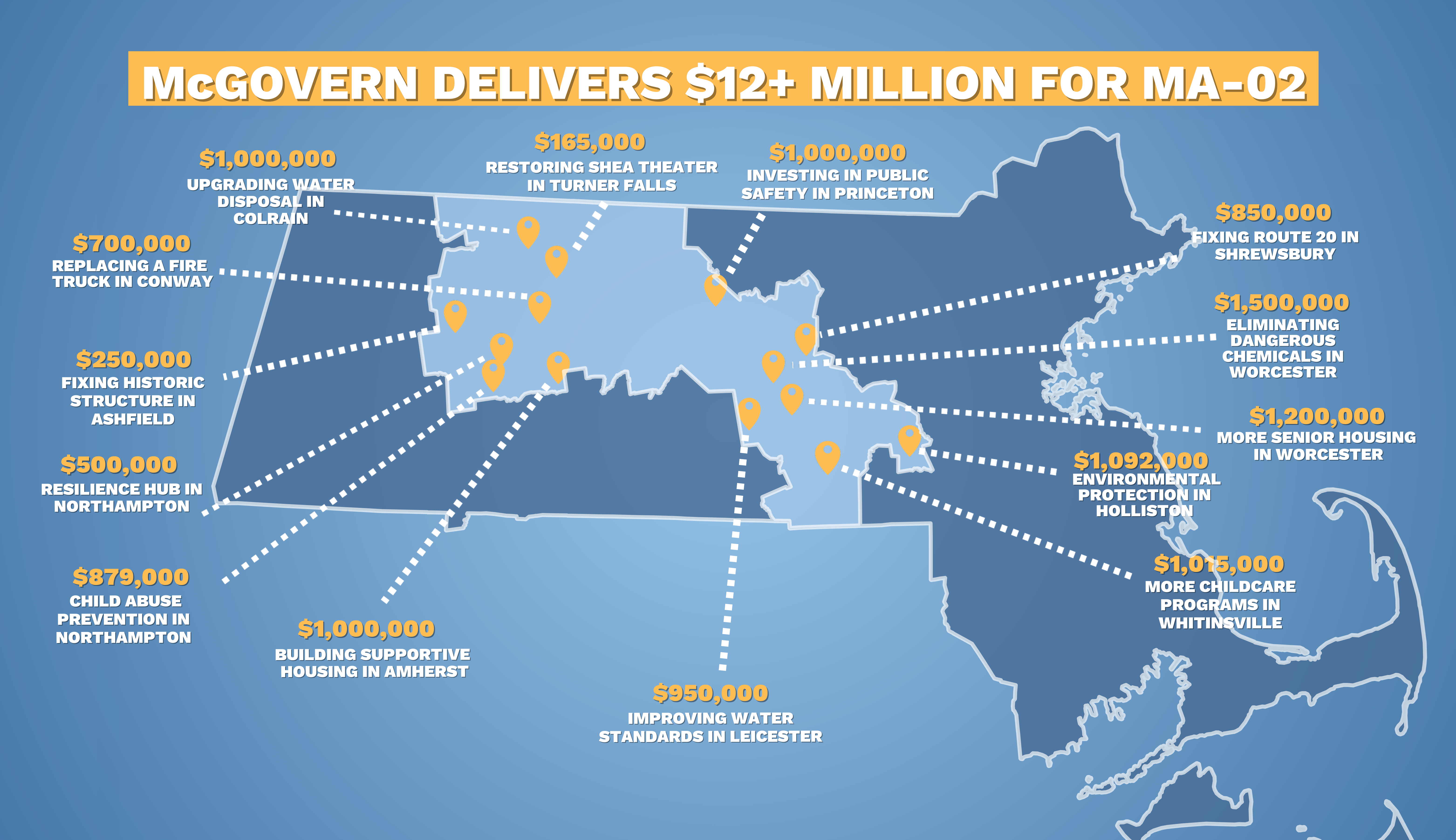 WASHINGTON—Today, Congressman Jim McGovern (D-MA), Ranking Member of the House Rules Committee, is announcing $12,101,00...